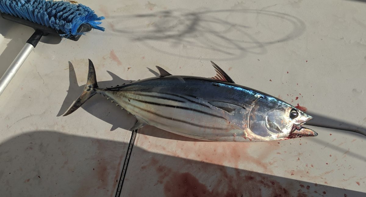 Another 100+km finally at our destination, let the games begin ... First fish is in the boat...