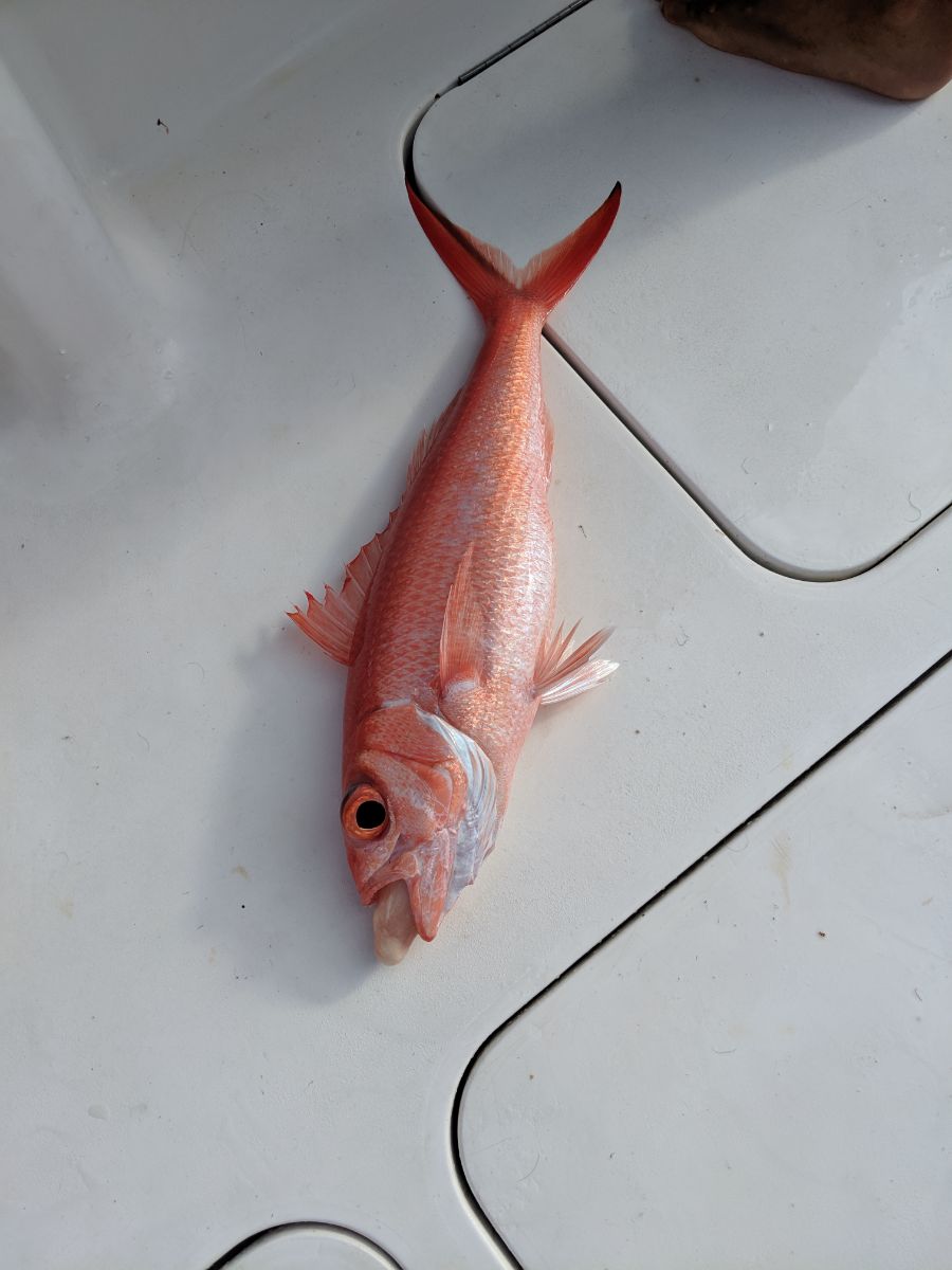 Back in the keys after a relatively short sail, caught a couple queen snappers we plan on eating tonight! Fishing trip officially over!